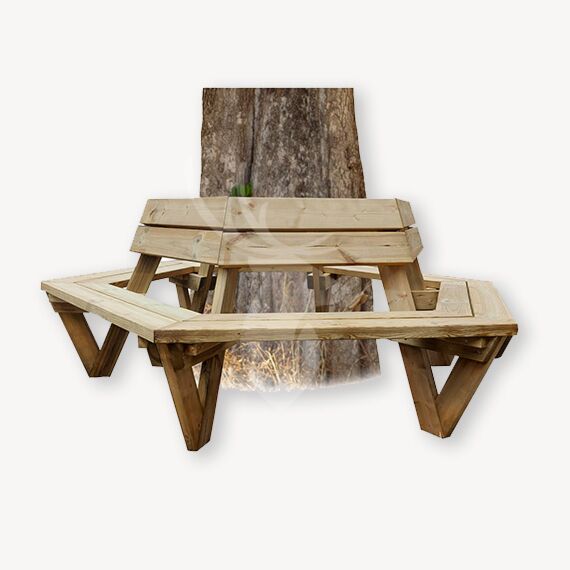 Boombank Barneveld is gemaakt van geïmpregneerd grenen en heeft een levensduur van 10 tot 15 jaar. De vorm is zeskantig waardoor er veel en ruime plekken zijn om te zitten. De kleur van het hout zal door invloed van het weer vergrijzen. Dit heeft geen invloed op de levensduur van de bank.
