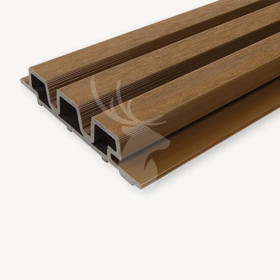 Deze WEO®35 planken zijn beschikbaar in de volgende kleuren: light grey, dark grey, teak brown, ipé brown en red cedar. Deze planken hebben de kelur teak brown die zichzelf kenmerkt door een lichtbruine kleur die direct zorgt voor een warme uitstraling. De planken hebben mooie kleurschakeringen en een lichte structuur, waardoor de planken een houten uitstraling hebben. De kleur lijkt op de kleur ipé brown, echter is teak brown nog nèt een tintje lichter.