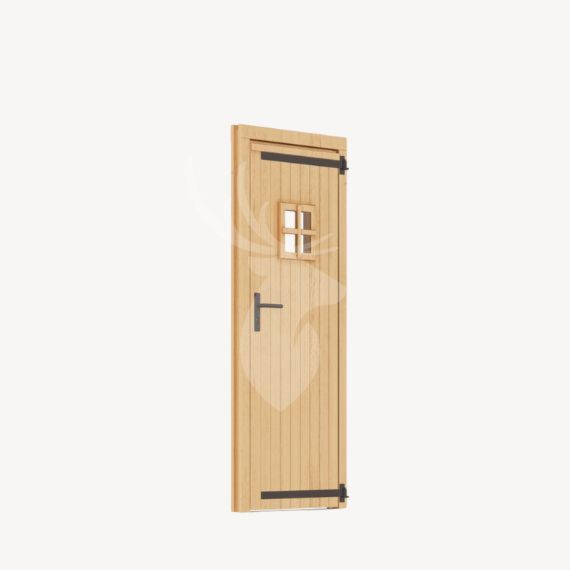Wil je graag op een stijlvolle manier je schuur of tuinhuis afsluiten dan is deze douglas deur met raampje ideaal. Door het kleine formaat van het raam heb je een mooie natuurlijk lichtinval, maar niet teveel inkijk. De deur is gemaakt van geschaafd, blank douglas hout wat kunstmatig gedroogd en gevingerlast is, het resultaat is een prachtige deur van premium kwaliteit! Het beslag is verzinkt en de hengen zijn bovendien verstelbaar. Er wordt een aluminium dorpel van 3 mm hoog bijgeleverd en alle gaten voor de bevestiging en het slot zijn voorgeboord, zo gaat de montage eenvoudiger. Aan de binnenkant heeft de deur een tochtrubber.