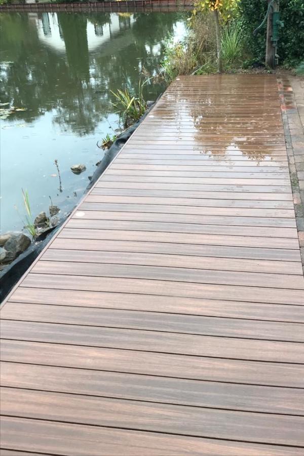 Composiet vlonderplanken worden veel toegepast als terras in de tuin, maar ook als vloer onder een veranda of overkapping, langs zwembaden of juist over het water. De laatste jaren zijn composiet vlonderplanken flink in opmars. Dat is ook niet gek, want deze planken brengen diverse voordelen met zich mee. De Fiberdeck vlonderplanken zijn gemaakt van hout- en kunststofvezels en zijn water- en vochtbestendig. Composiet vlonderplanken worden ook niet glad, werken niet en verkleuren heel licht na het leggen en zijn daarna kleurvast.