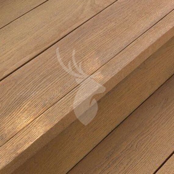 De vierkante plint heeft dezelfde mooie houtlook als de Millboard vlonderplanken en is verkrijgbaar in dezelfde kleuren, zodat je de vlonder in dezelfde kleur kunt afwerken.