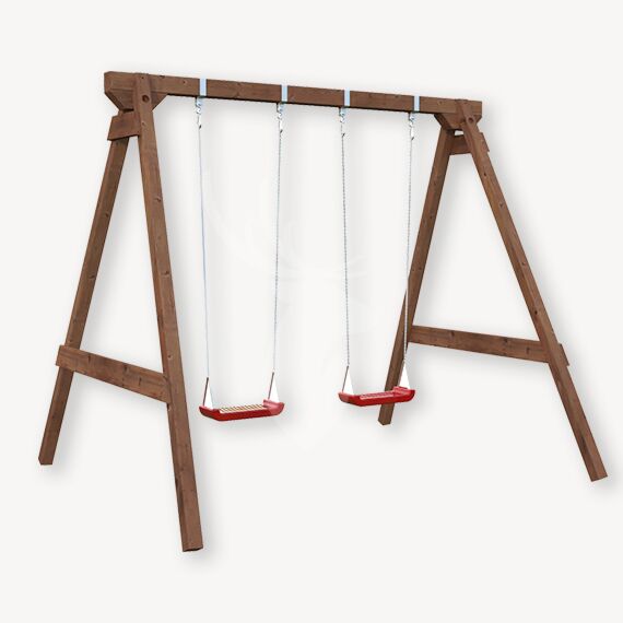 De schommel is gemaakt van bruin geïmpregneerd vuren balken en heeft een strakke, natuurlijke uitstraling. Dankzij de dwarsverbindingen is het een stevige constructie waar je jarenlang plezier van hebt.