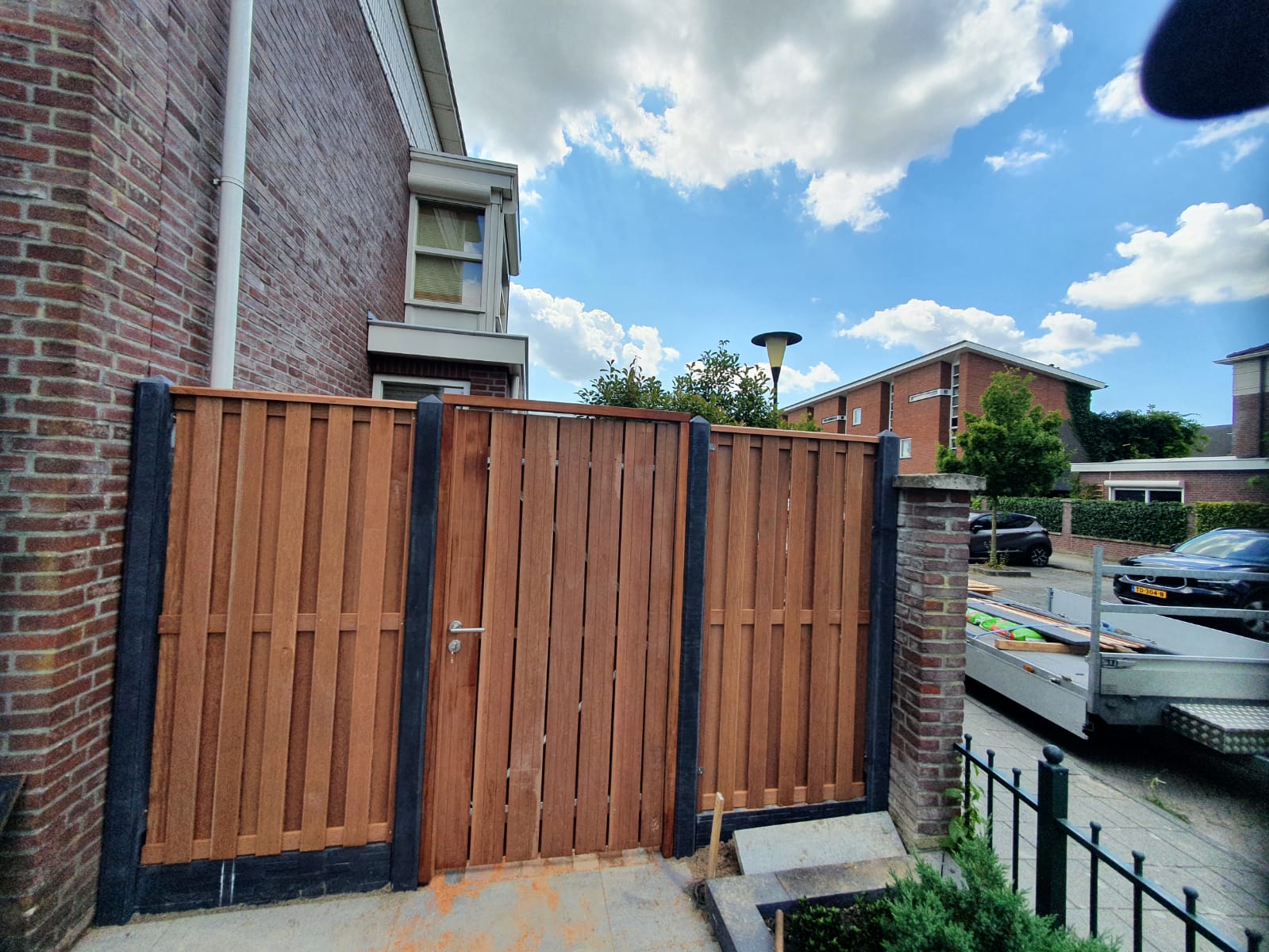 Wil je in alle rust kunnen genieten van je tuin? Combineer dan je zichtdichte schutting met deze zichtdichte hardhouten schuttingdeur. Een stijlvolle deur die bovendien erg stevig is door het verzinkte ijzeren deurframe. Deze tuindeur heeft een plankafstand van ca. 1 - 3 cm, wat de poort zichtdicht maakt. Hierdoor past de tuindeur goed bij tuinschermen Laren en Blaricum.