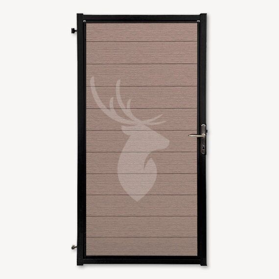 Wengé brown schuttingdeur composiet met zwart aluminium