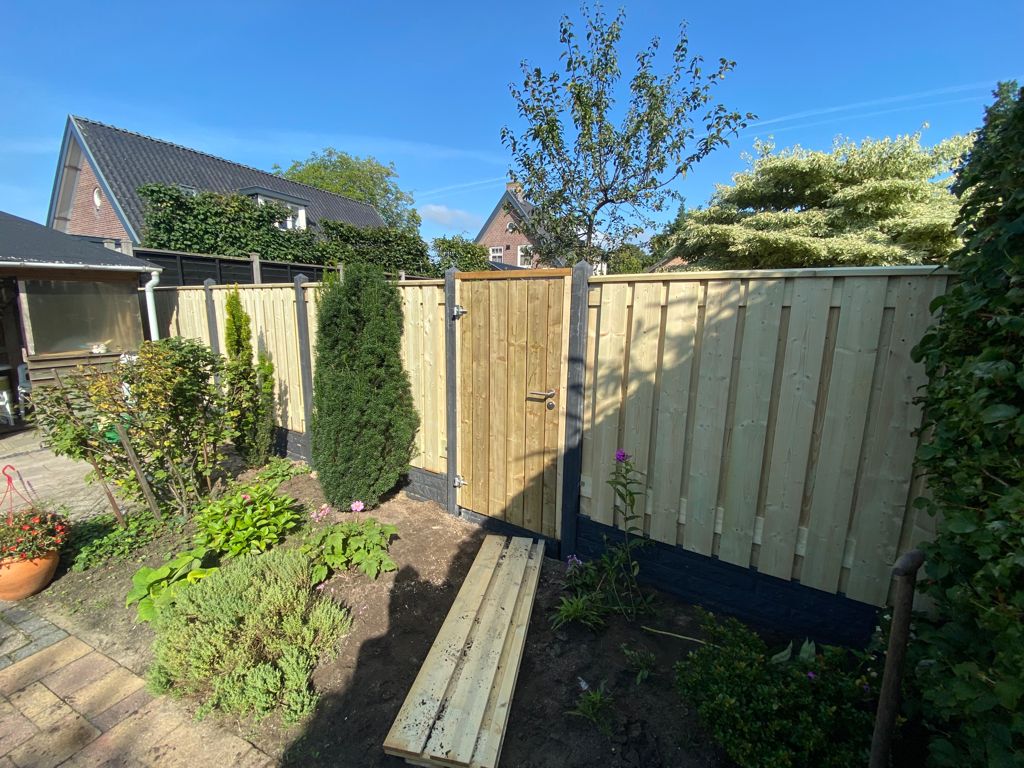 Vurenhouten schutting Garderen is gemaakt van 19 geïmpregneerde planken: 10 aan de voorzijde en 9 aan de achterzijde. Daarnaast is deze houten schutting voorzien van 2 tussenklampen voor extra stevigheid. Hierdoor kan het tuinscherm alleen verticaal geplaatst worden. Door de hoeveelheid planken biedt dit tuinscherm erg weinig doorkijk. Zo sluit je jouw tuin op een elegante manier af.
